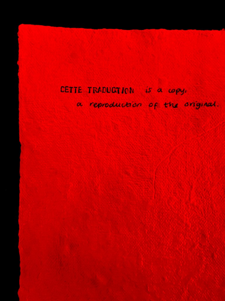 As our reliance on and credulity of digital media threatens our sense of reality, we may parry its impacts by returning to the tactile, for it is materiality that separates the digital from the handmade. Using handmade techniques at each stage of the process, Les Traductions places emphasis on the handmade in contention with the digital, exploring the way in which reproductions may transform the meaning of the original and the effect this has on our perception of the original.