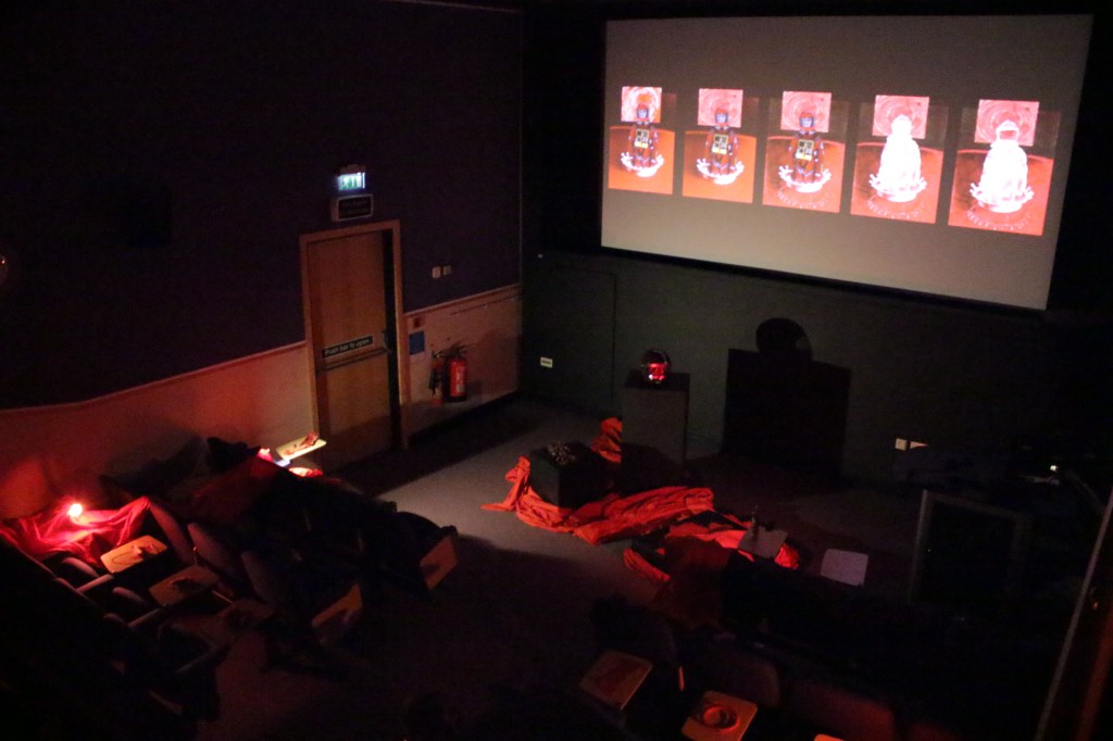 Using Sheffield Hallam University’s very own cinema room, a place for filmic transportation and a nod to the increasingly prevalent cinematic themes and imagery within Pemberton’s practice, Project Spacesuit brought together an accumulation of works, animation, handmade and ready made objects, monoprints and more, curated as artefacts of yet-to-come.