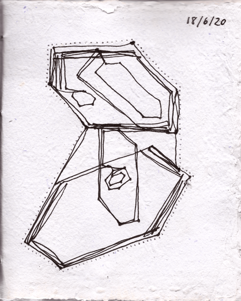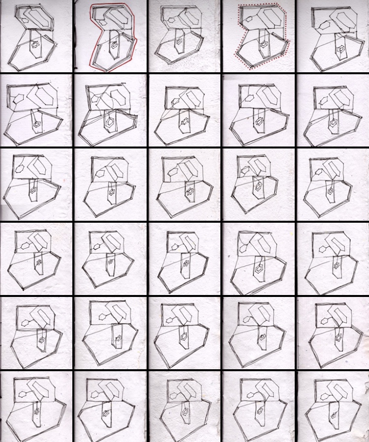 This series of handmade books demonstrates how a single image becomes increasingly deformed as it deviates further and further from the original. Each day presents a new page with a new drawing – a copy of the previous drawing. Chinese whispers, as it were, but with drawings. With each iteration, the image alters marginally, perhaps undetected at the time however it results in the final image being unrecognisable from the first.