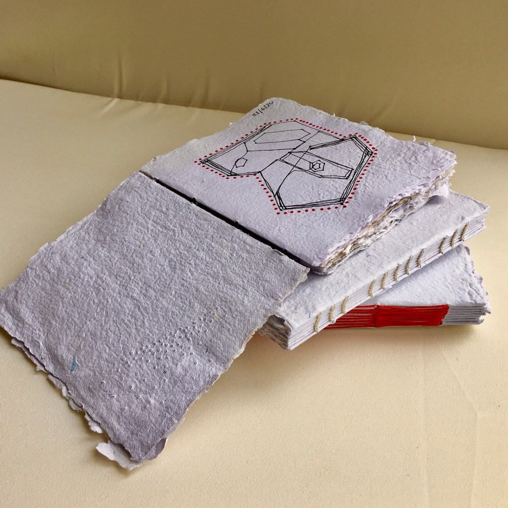 2020-21, embroidery and ink on handmade paper, 6 handbound books